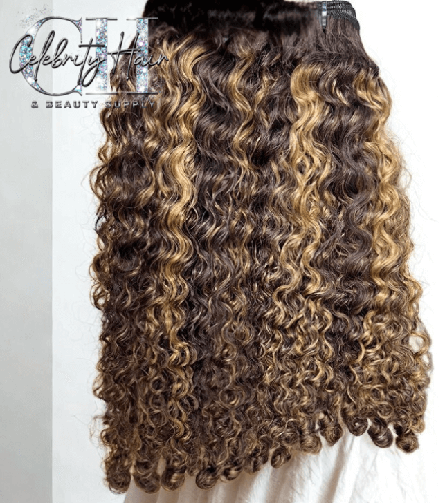 These curly bundles deliver a lush, voluminous silhouette with a subtle sun-kissed highlight blend. The 1b base provides a versatile off-black shade that blends seamlessly with a wide range of skin tones, while the 27 highlights add warmth and dimension for a multi-tonal effect that looks incredibly natural.